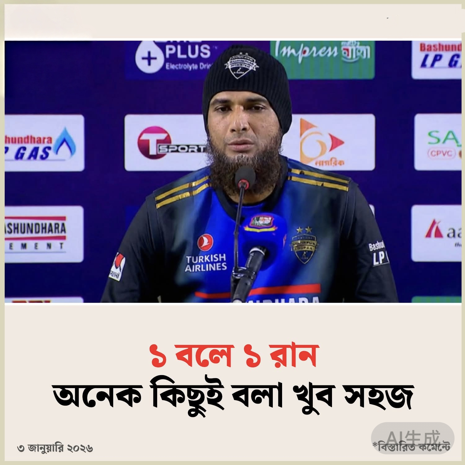 আগের দিনের ম্যাচ নিয়ে মাহমুদউল্লাহ বলেন, ‘১ বলে ১ রান… অনেক কিছুই বলা খুব সহজ। তবে ডেলিভার করতে পারা… এটা অনেক সময় হয়, অনেক সময় হয় না। মানুষ অনেক সময় ভাবে যে ক্রিকেট খুব সহজ।’