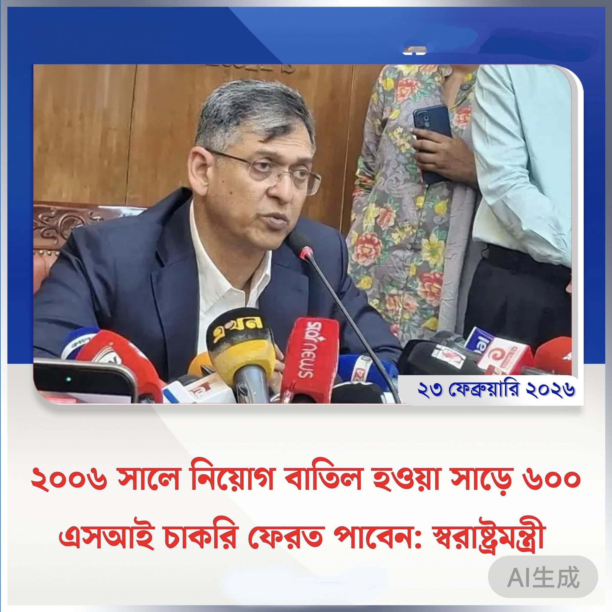 ২০০৬ সালে নিয়োগ বাতিল হওয়া ৬০০ এসআই চাকরি ফেরত পাবে: স্বরাষ্ট্রমন্ত্রী