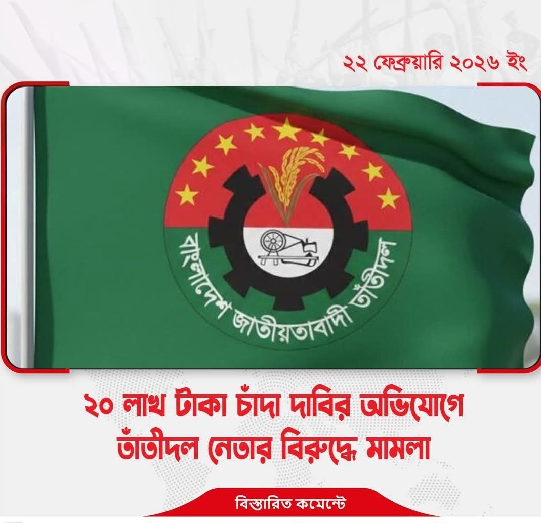 প্রচ্ছদ » ২০ লাখ টাকা চাঁদা দাবির অভিযোগে তাঁতীদল নেতাসহ ছয়জনের বিরুদ্ধে মামলা - দৈনিক জাগো জনতা