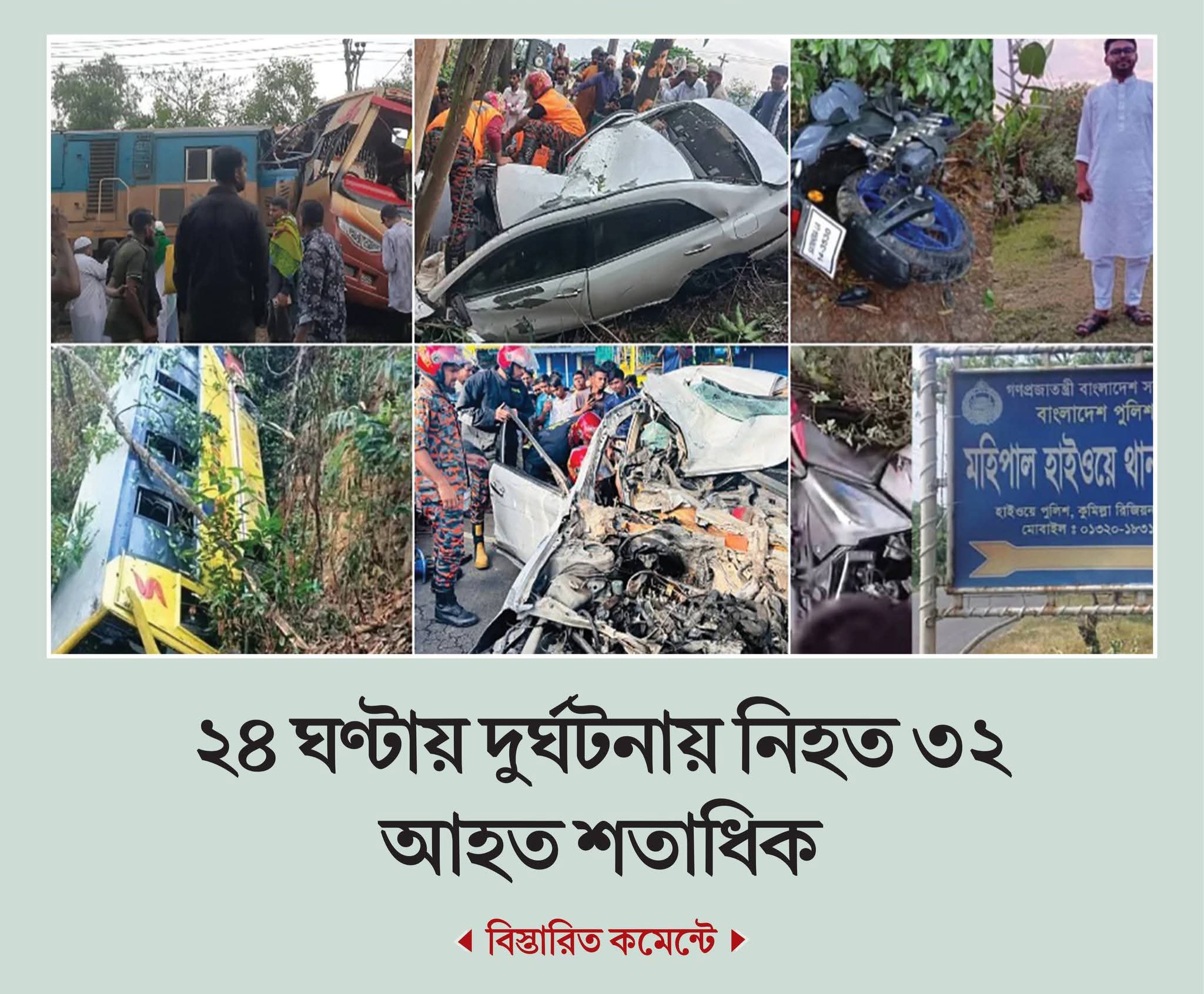২৪ ঘণ্টায় দুর্ঘটনায় নিহত ৩২, আহত শতাধিক