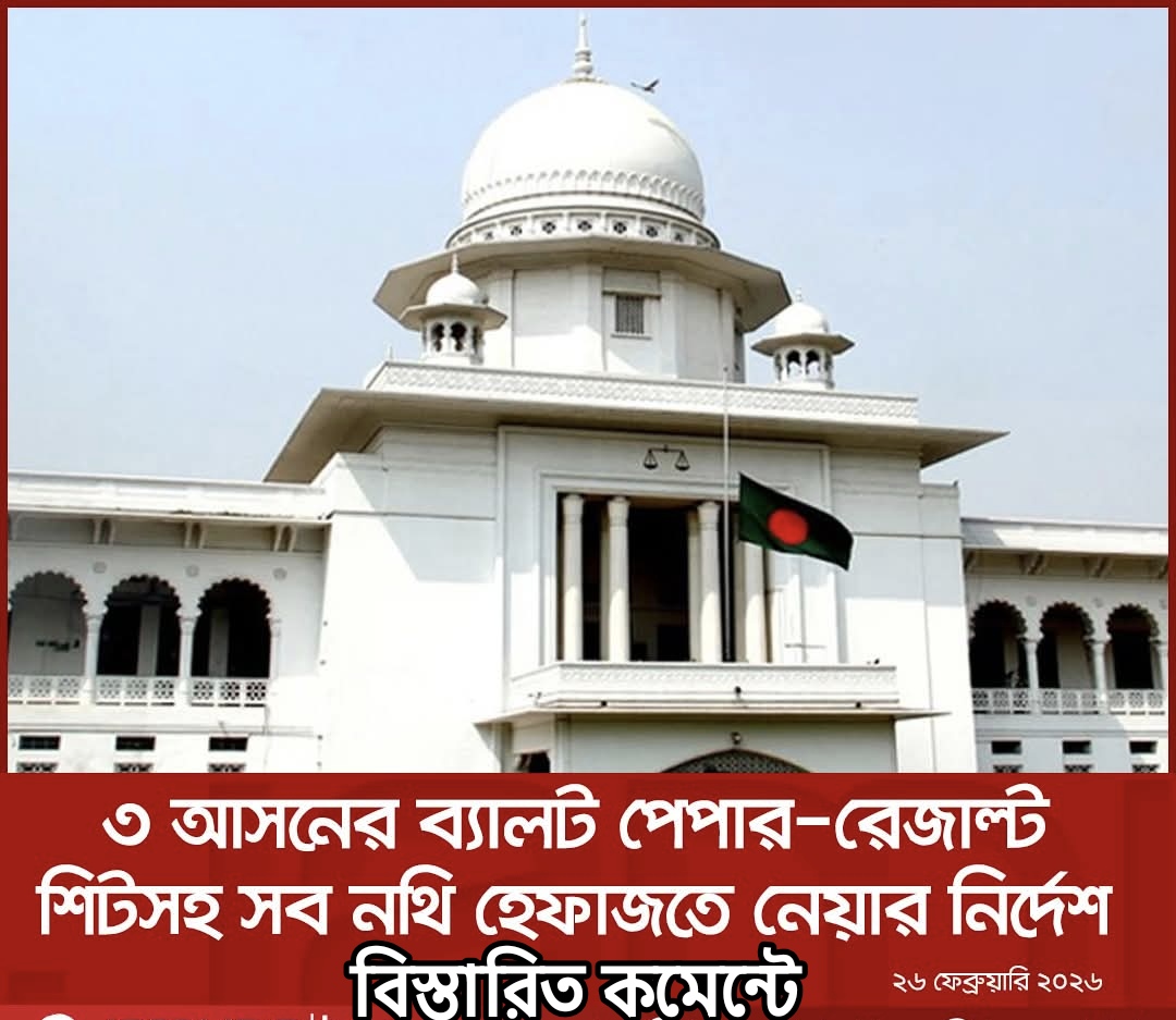 বৃহস্পতিবার (২৬ ফেব্রুয়ারি) এ আবেদনের পর এই ৩ আসনের সব ব্যালট পেপার রেজাল্ট শিটসহ সব নথি হাইকোর্টের হেফাজতে নেয়ার নির্দেশনা দিয়েছেন নির্বাচনি ট্রাইব্যুনাল।