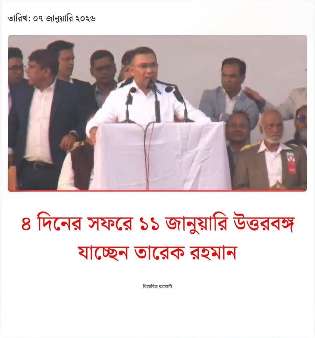 ৪ দিনের সফরে ১১ জানুয়ারি উত্তরবঙ্গ যাচ্ছেন তারেক রহমান