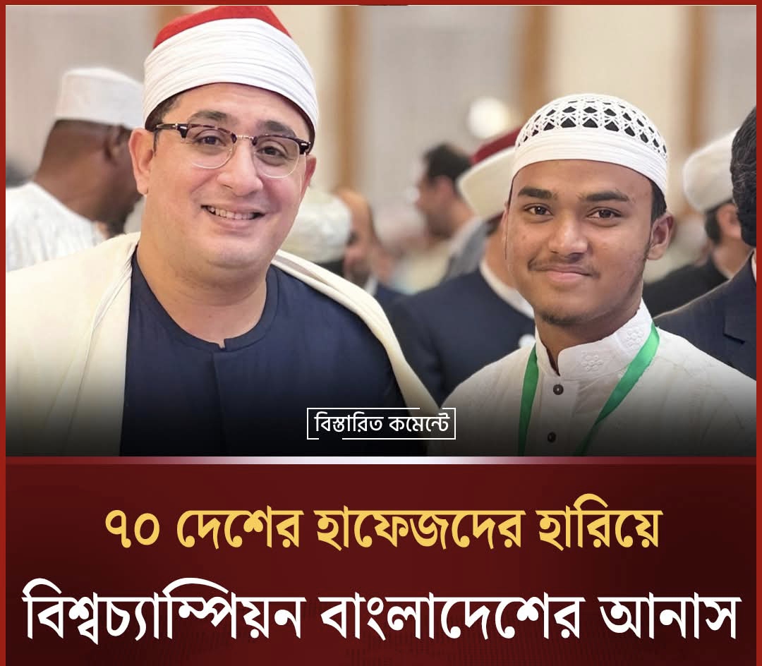 ৭০ দেশের হাফেজদের হারিয়ে বিশ্বচ্যাম্পিয়ন বাংলাদেশের আনাস