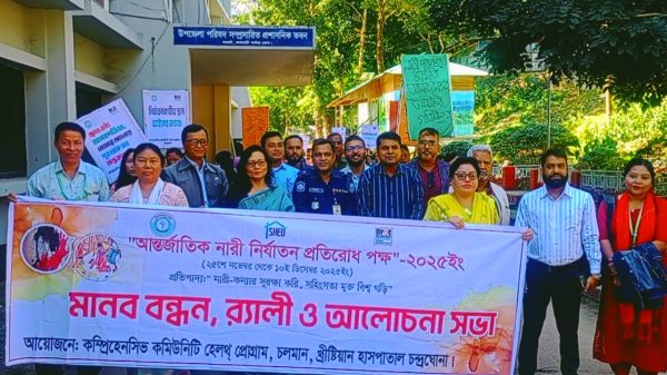 ঝুলন দত্ত, কাপ্তাই (রাঙামাটি) প্রতিনিধি: আন্তর্জাতিক নারী নির্যাতন প্রতিরোধ পক্ষ উদযাপন উপলক্ষে রাঙামাটির কাপ্তাই চন্দ্রঘোনা খ্রিষ্টিয়ান হাসপাতালের কমপ্রেহেনসিভ কমিউনিটি হেলথ প্রোগ্রামের আয়োজনে মানববন্ধন,…