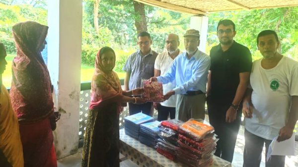 দুর্গাপূজা উপলক্ষে ওয়াগ্গাছড়া চা বাগানের শ্রমিকদের মাঝে নতুন কাপড় বিতরণ