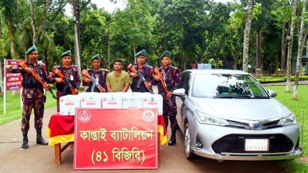 কাপ্তাইয়ে বিজিবির অভিযানে বিদেশি সিগারেটসহ আটক ১, টয়োটা কার জব্দ